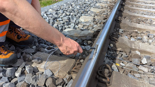 Il metodo di misura conforme alla norma, che prevede l’eccitazione del binario con un martello a impulso e la registrazione della risposta vibratoria tramite sensori di accelerazione, è non invasivo e può essere eseguito anche in condizioni di esercizio, se le condizioni locali lo permettono.